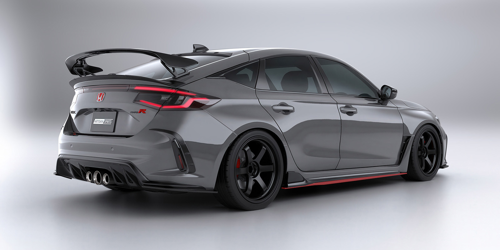 サイドからリアへ自然につながるラインの流れを意識しつつ視覚的な重心を下げ過ぎることなく存在感を演出します