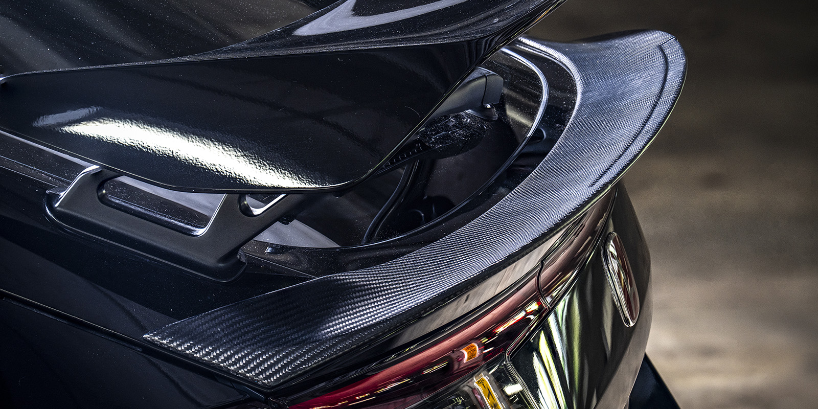 純正の造形に馴染みながらもリアビューに立体感と深みをもたらし落ち着いた存在感を演出します