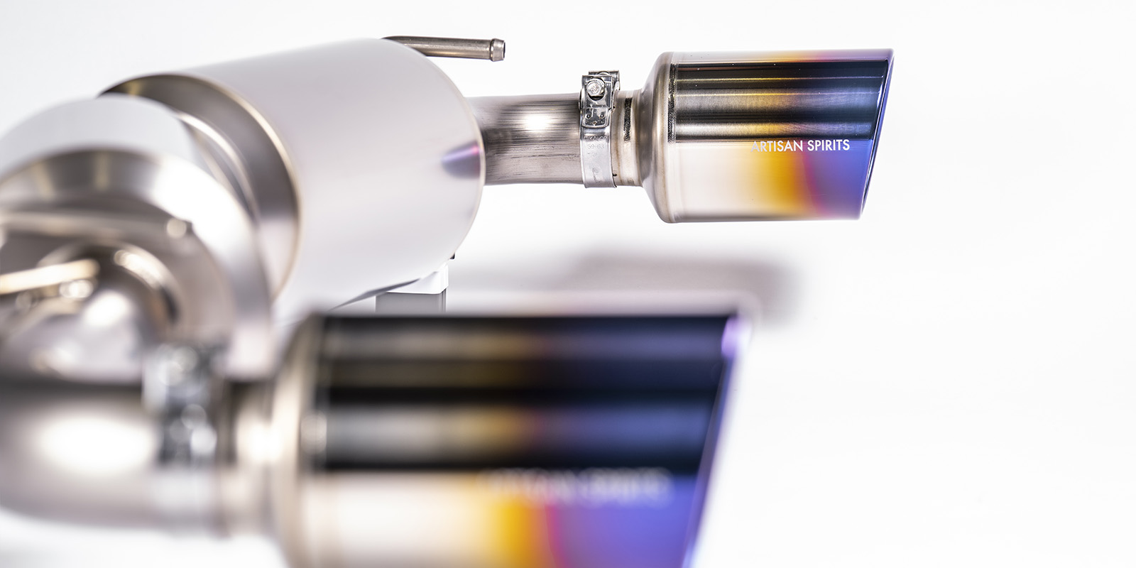 折り返し形状のテールを採用し上質なビジュアルと左右分割形状により排気の効率と軽量化(純正比約-8.2kg)も実現いたしました
